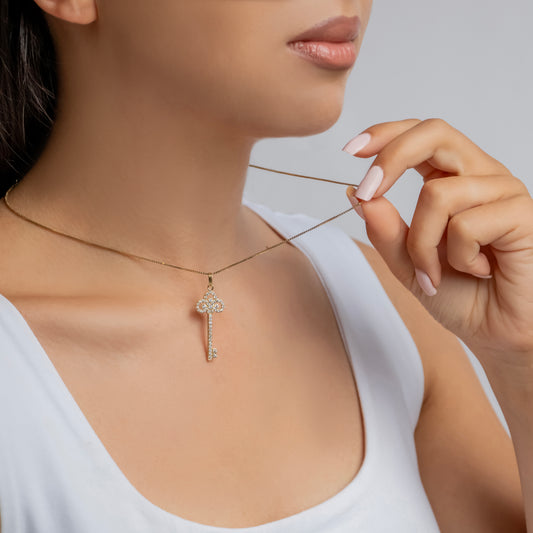Diamond Key In 14K Solid Gold