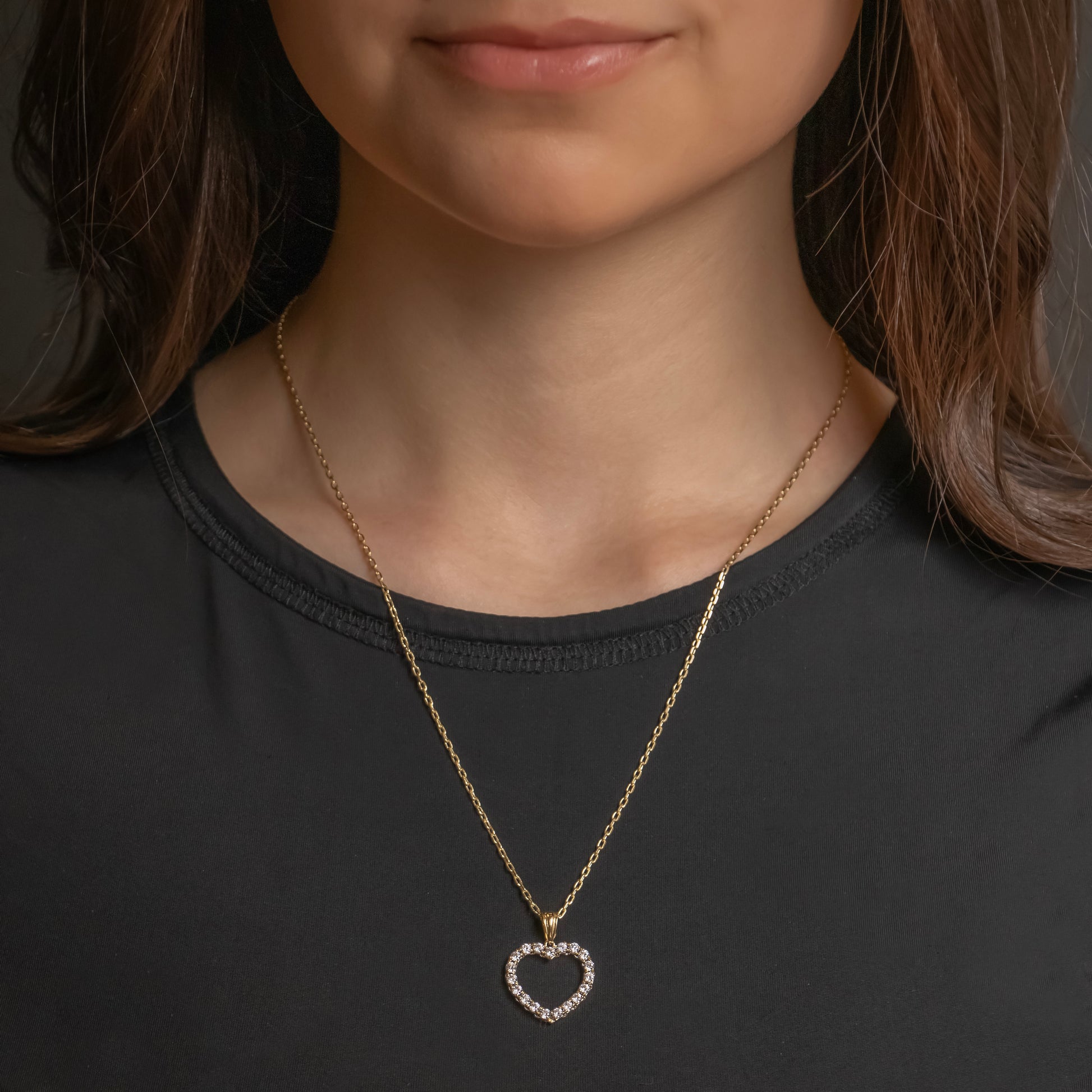 Diamond Heart Outline Pendant In 14K Solid Gold